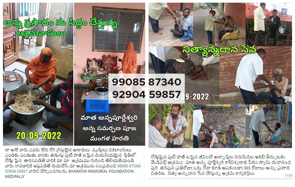 Inspired by the teaching of SWAMI VIVEKANANDA “Rogi Devo Bhava and Daridra Devo Bhava”. “BHARATHI MEMORIAL FOUNDATION” a home for the orphan Patients, physically challenged and mentally retarded and for serving destitute established in the year 2009 and Registered in 2010.