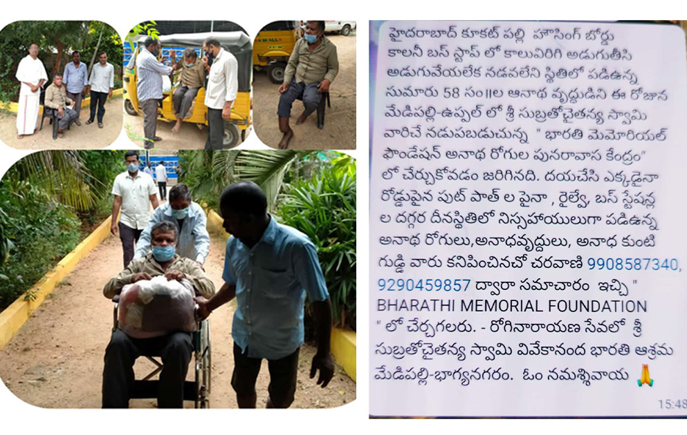Bharathi Memorial foundation aim is to provide shelter to destitute patients suffering from outcaste disorders and help them to cure their ailments.